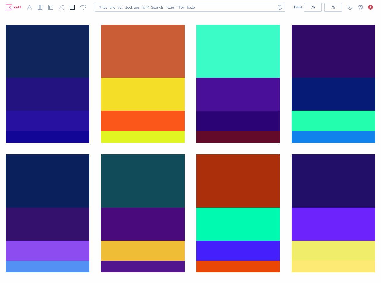 このツールはカラーパターンを大量に提案してくれるので、あなたの理想の色に出会えるかもしれません。