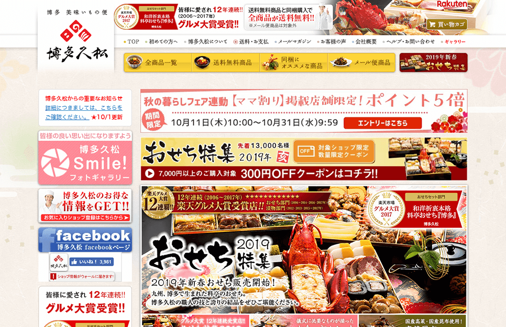 今の時期はおせち特集が始まってサイトはさらに華やかです。