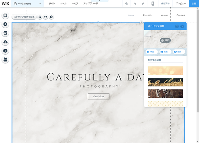 ストリップ背景もきれいな写真が既に登録されていて素敵!動画にすることも可能。