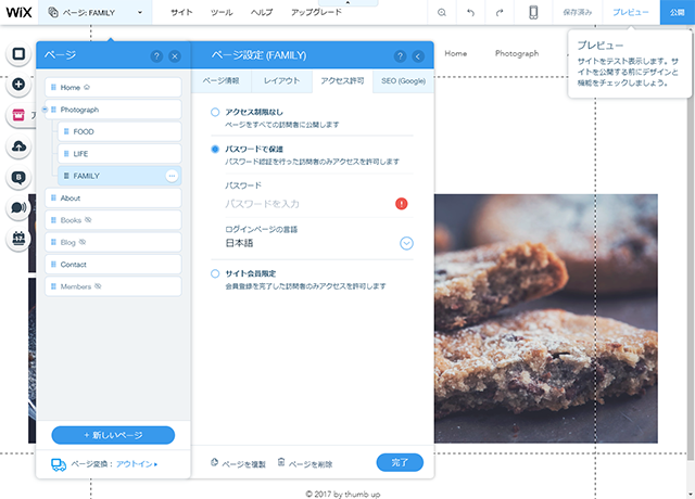 任意のページのみアクセス制限をかけたい場合はページのアクセス許可で設定可能です。