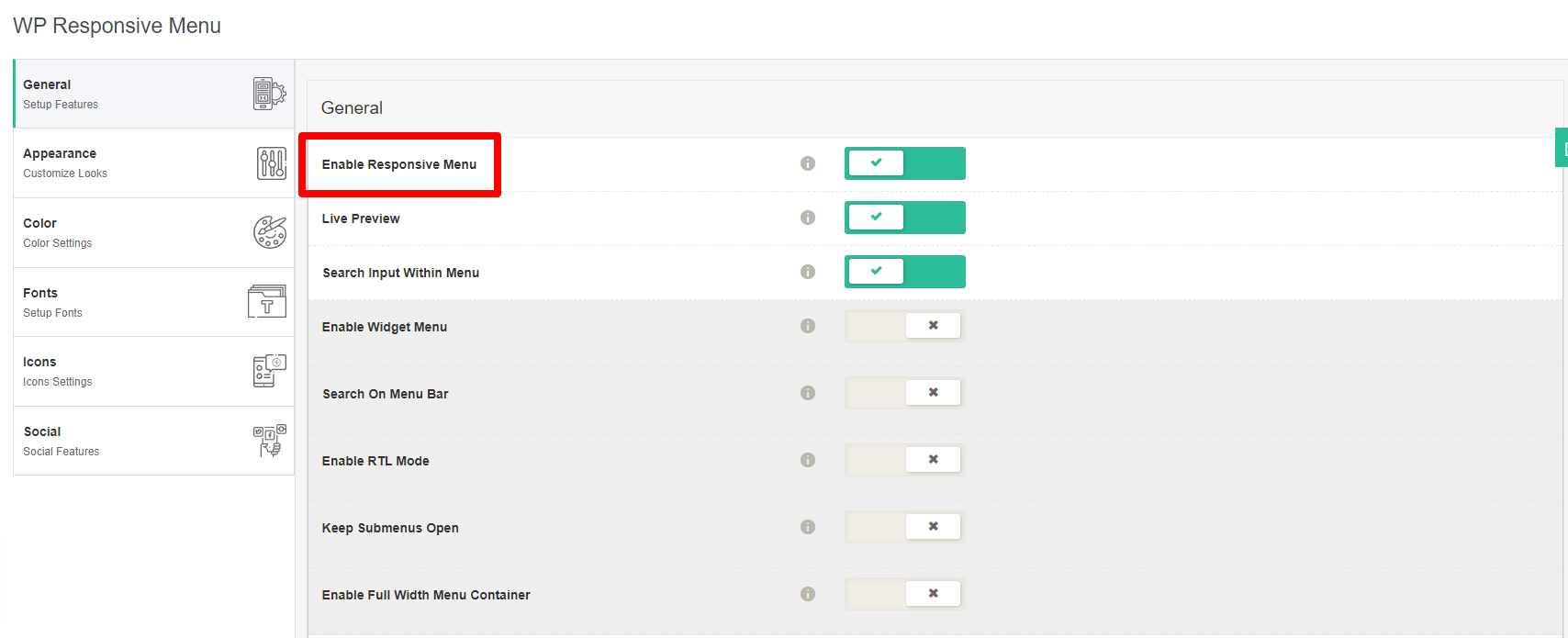 導入はすごく簡単で、設定の「General」にある「Enable Responsive Menu」をONにすれば終わりです。